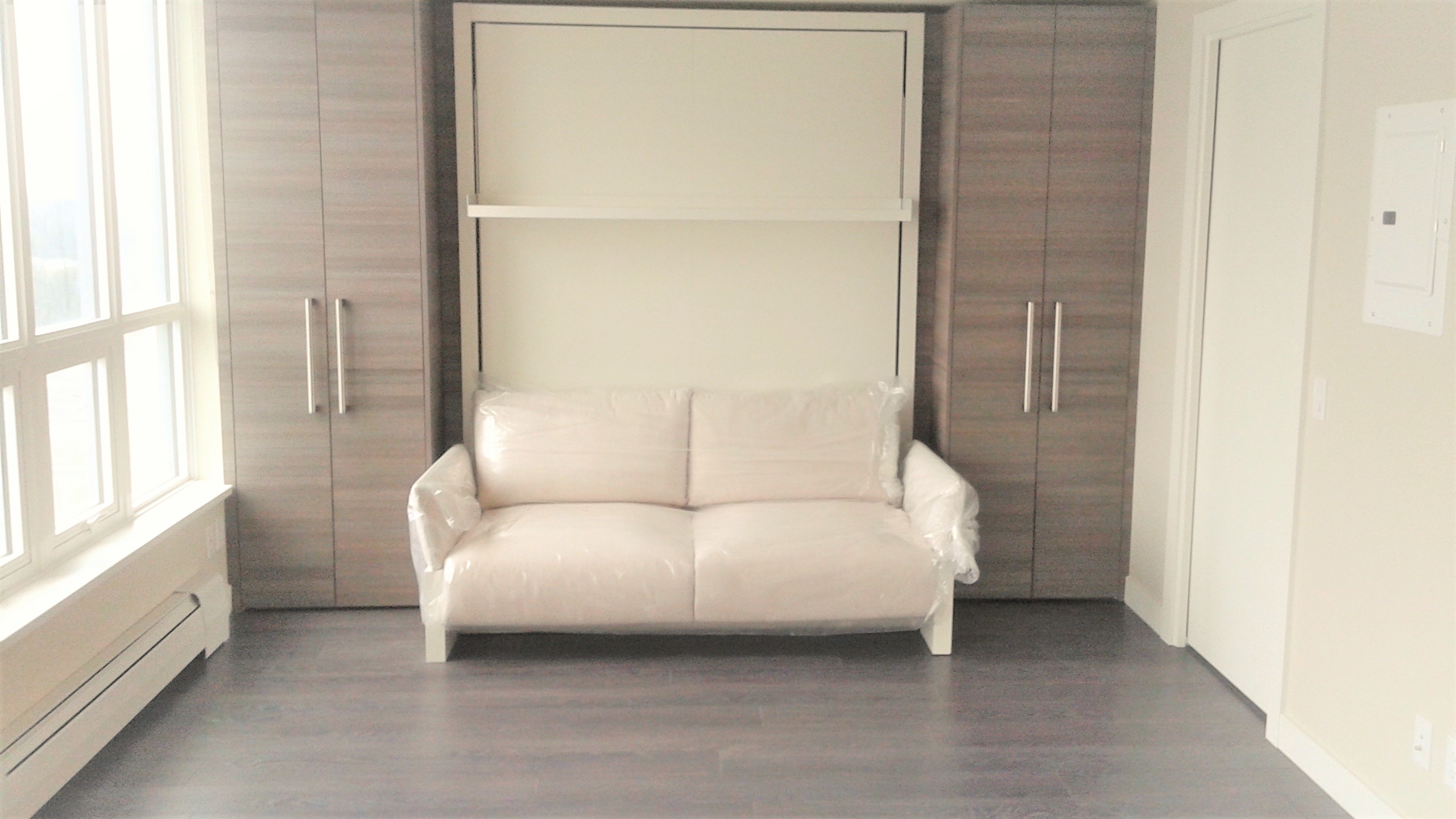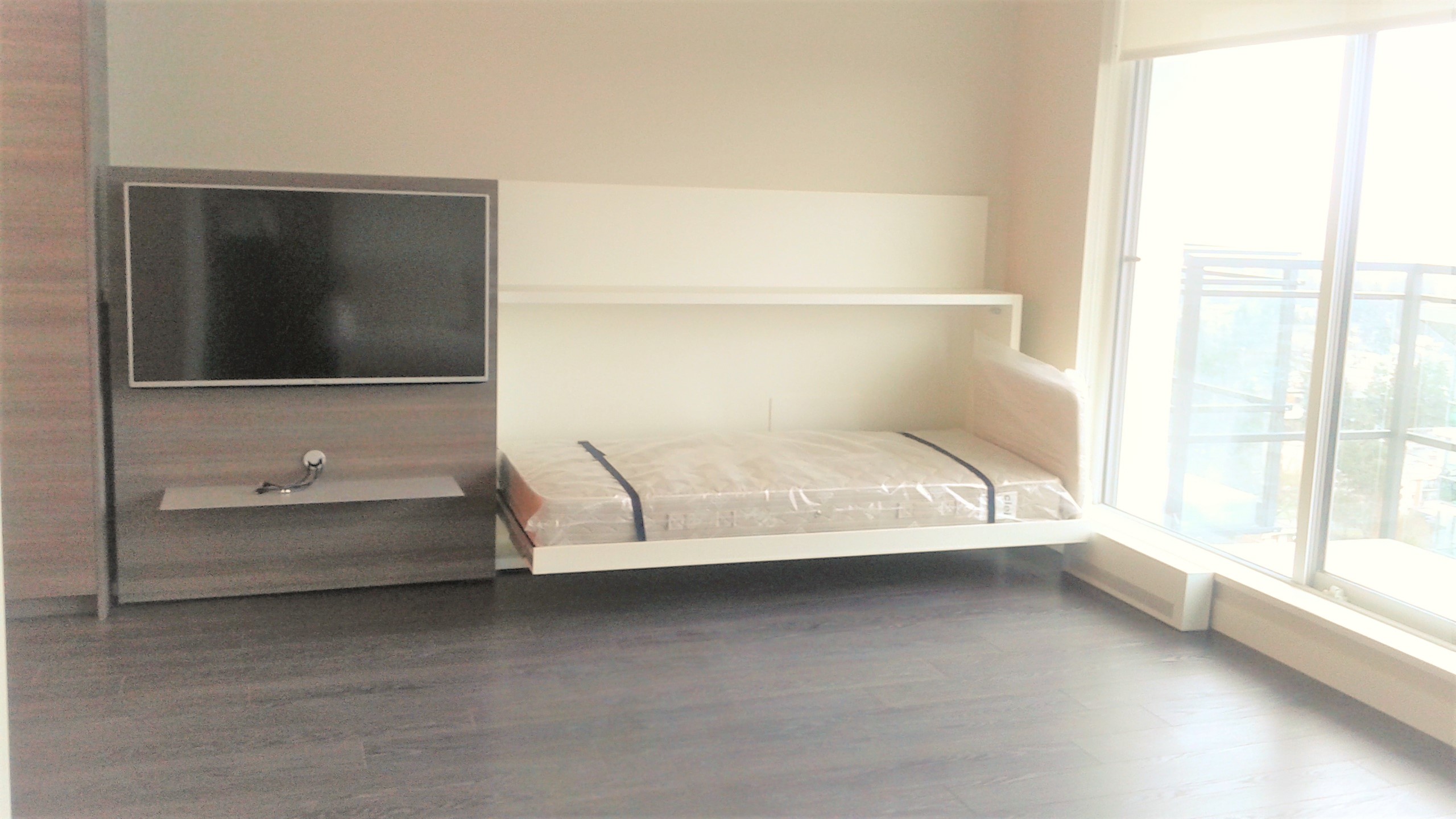 Spacious 1 bedroom apartment in brand new building located in the exciting new University District, Surrey Central. Great layout with lots of closet space. Steps away from the Skytrain Station, Restaurants, Shopping and SFU Campus. Modern comfort in the Alumni tower by Bosa Properties. Comes with some furnishings including queen size Murphy bed, sofa bed, dinning table, dishwasher, washer/dryer in unit, etc.