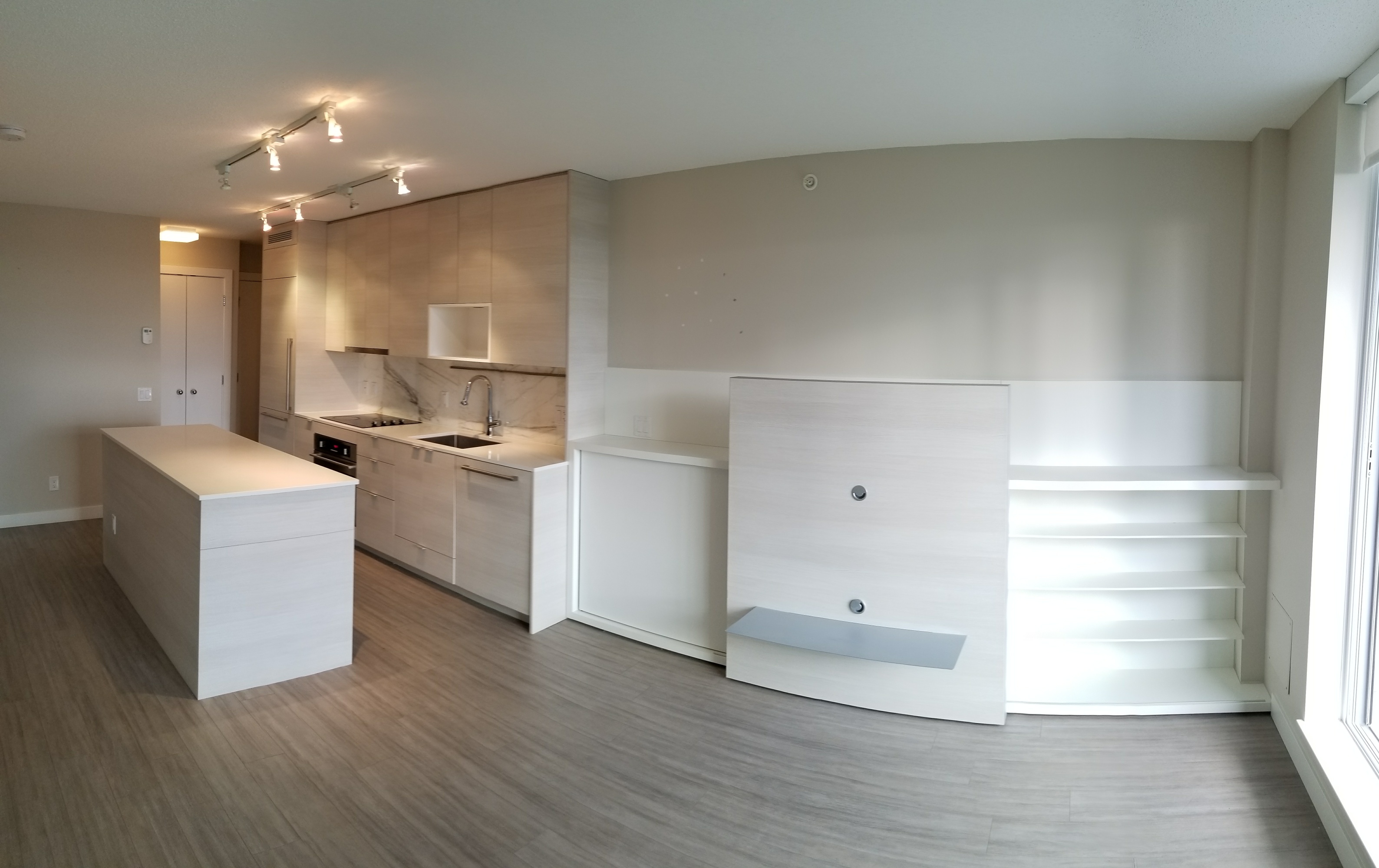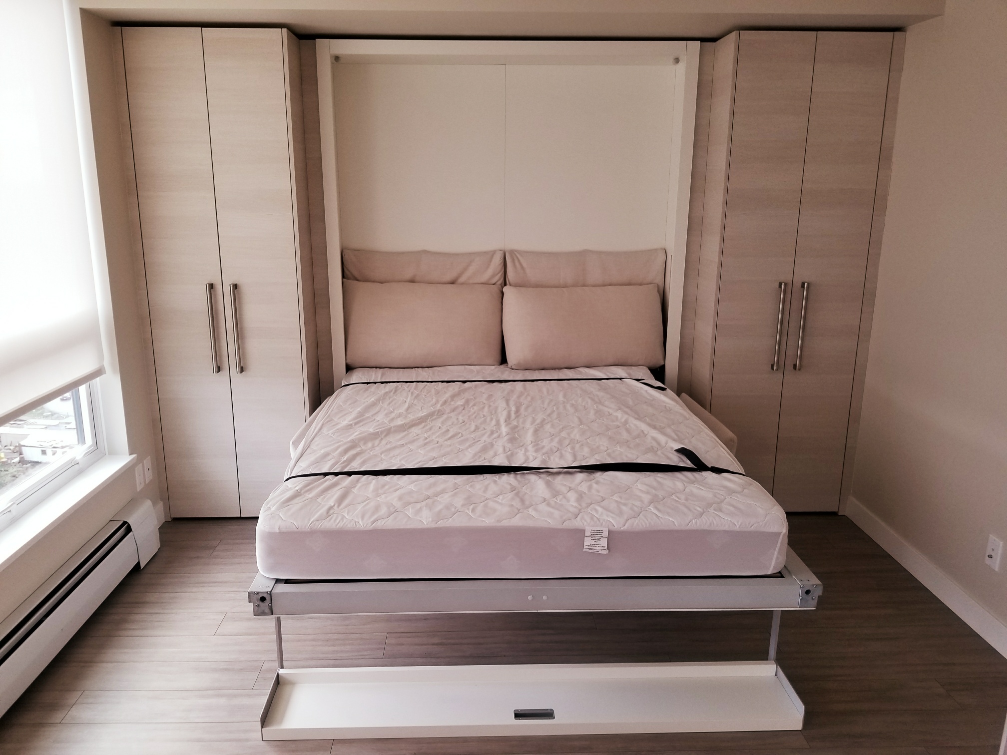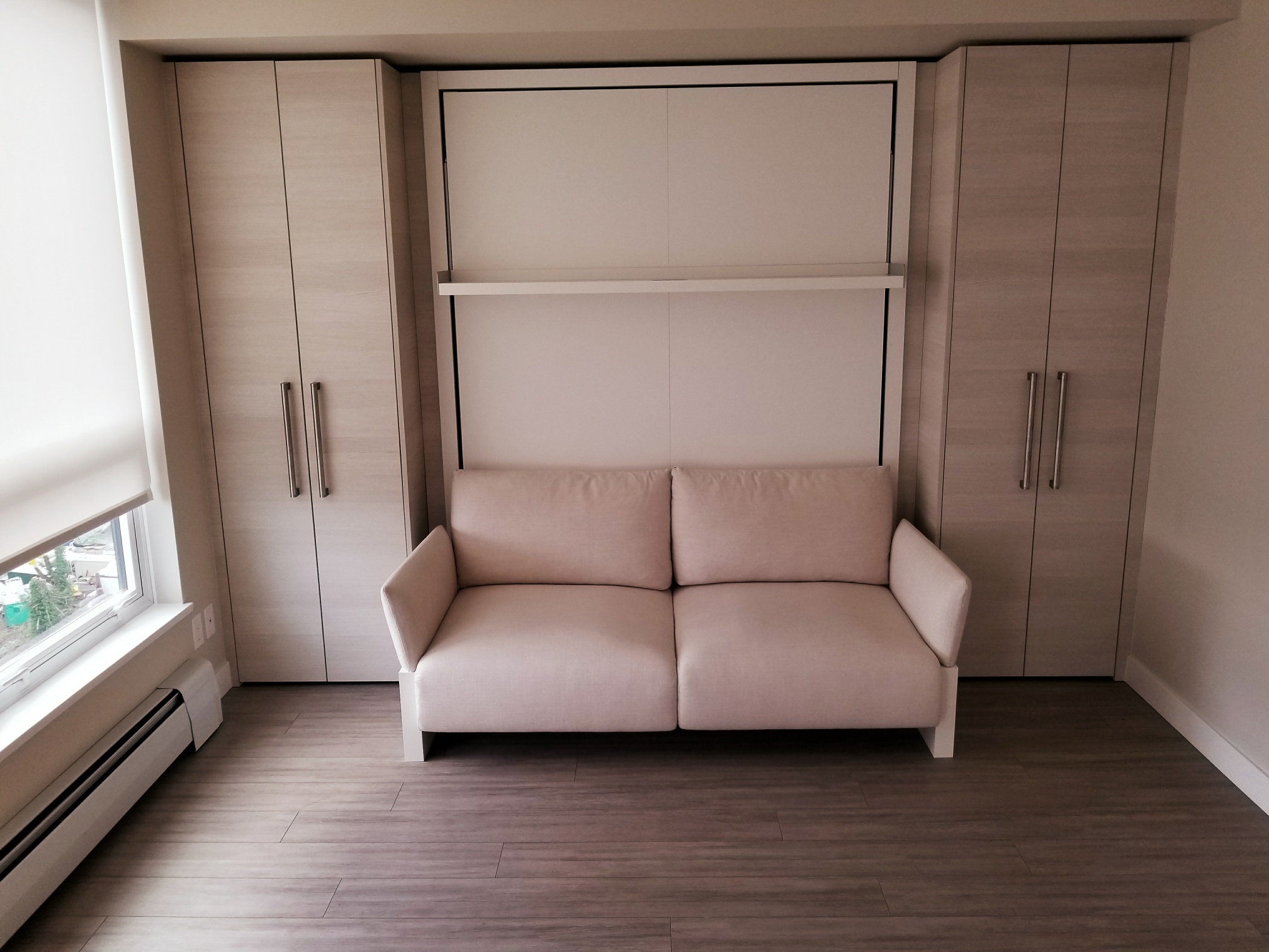 This unit comes partially furnished with a queen sized murphy bed, built in single bed and built in dining room table that can accommodate up to 8 people.