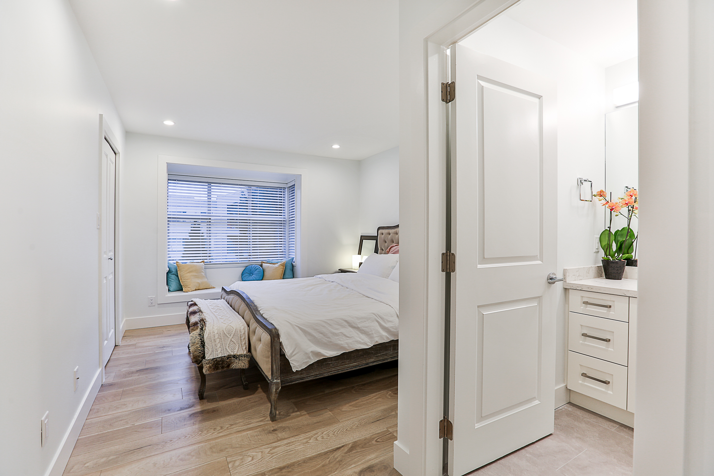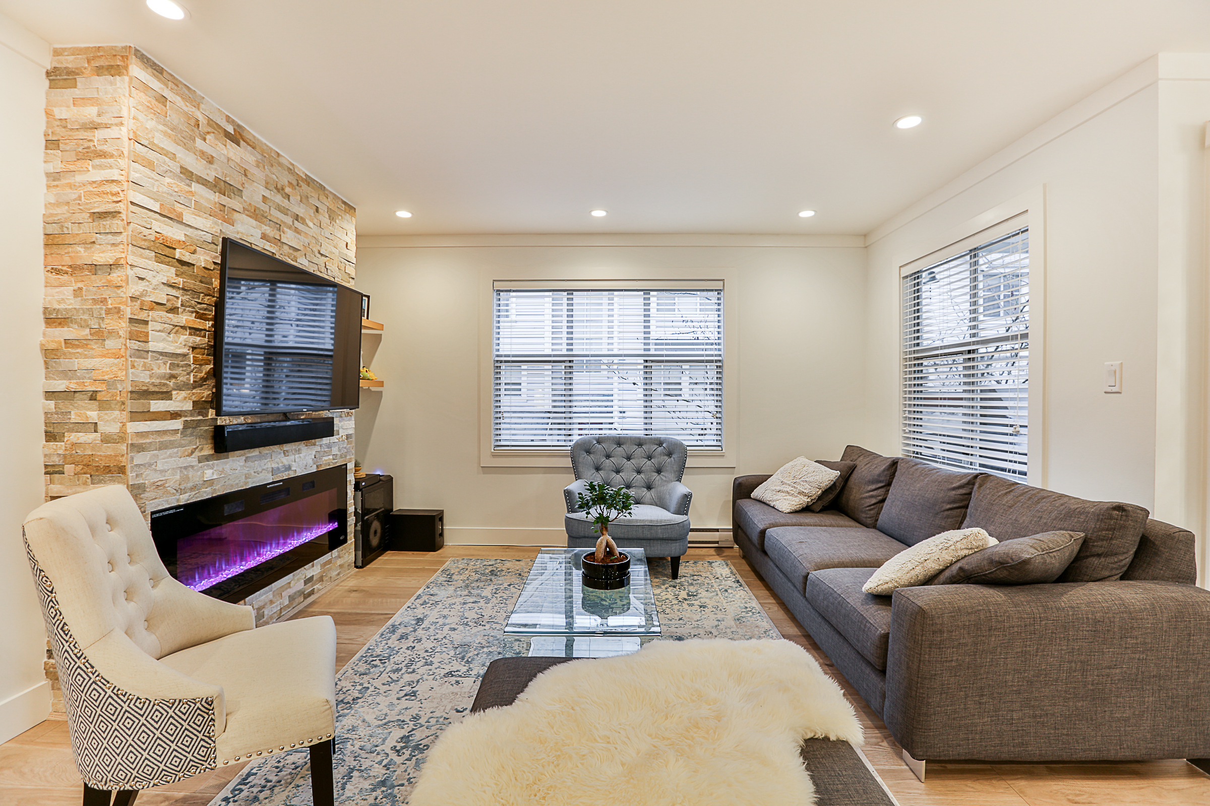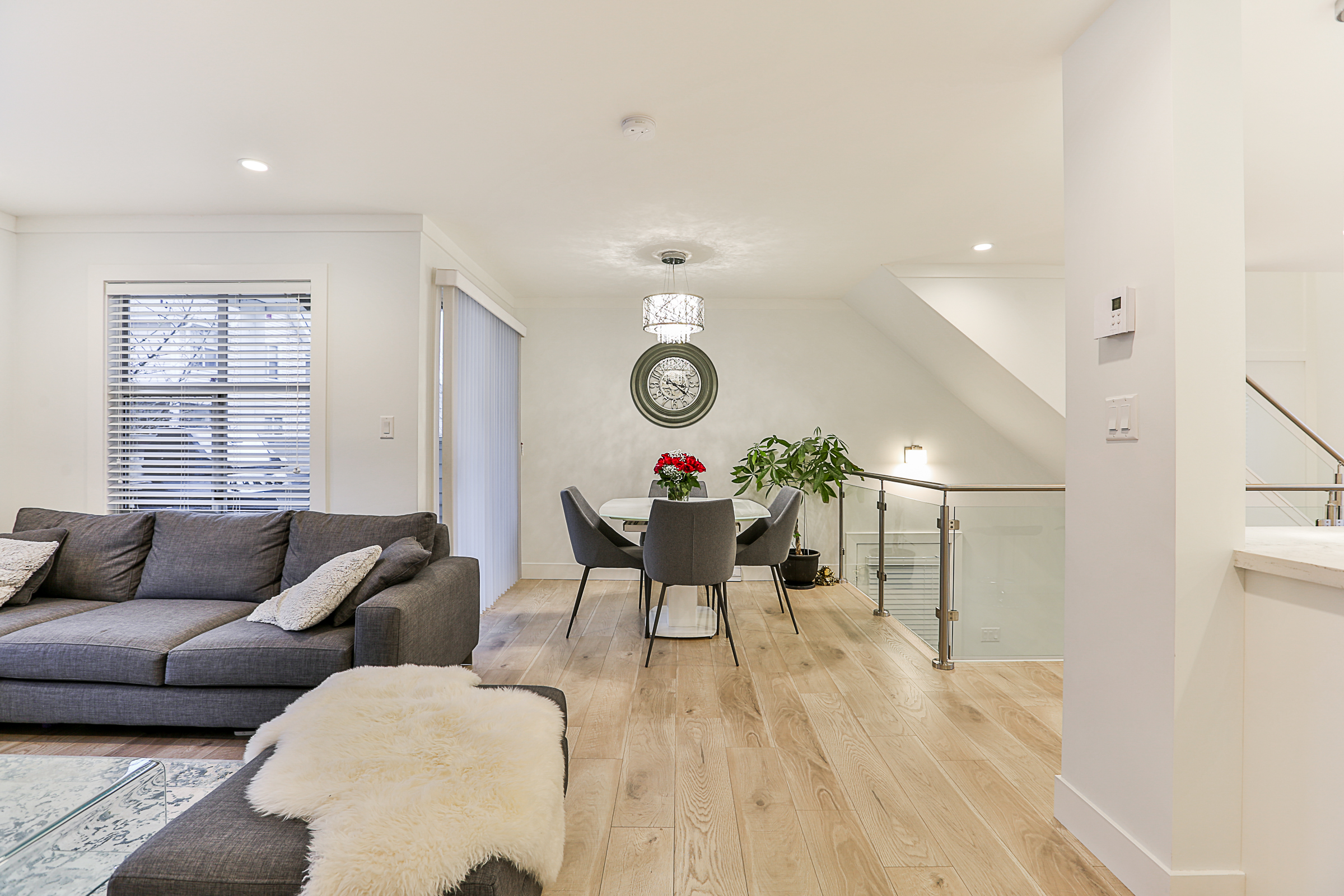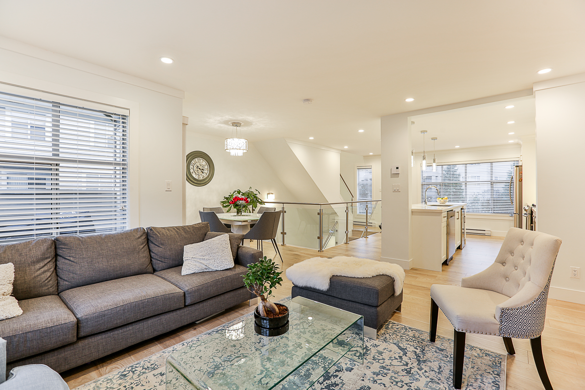Fabulous 3 bed, 3 bath END UNIT Townhouse COMPLETELY RENOVATED with an open concept floor plan and meticulous attention to detail. The Gourmet Kitchen features brand new quartz countertops, upscale stainless steel appliances, gorgeous real wood cabinets, 10 foot + kitchen island with a built in wine cooler, Delta fixtures including a pot filler and more! Brand new flooring, glass and stainless steel railings, custom fireplace, blinds and lighting throughout. The enlarged ensuite has a stunning glass shower with heated floors and quartz counters. Recreation Room on the lower floor, a great patio, SIDE by SIDE double garage, situated in a family friendly complex.