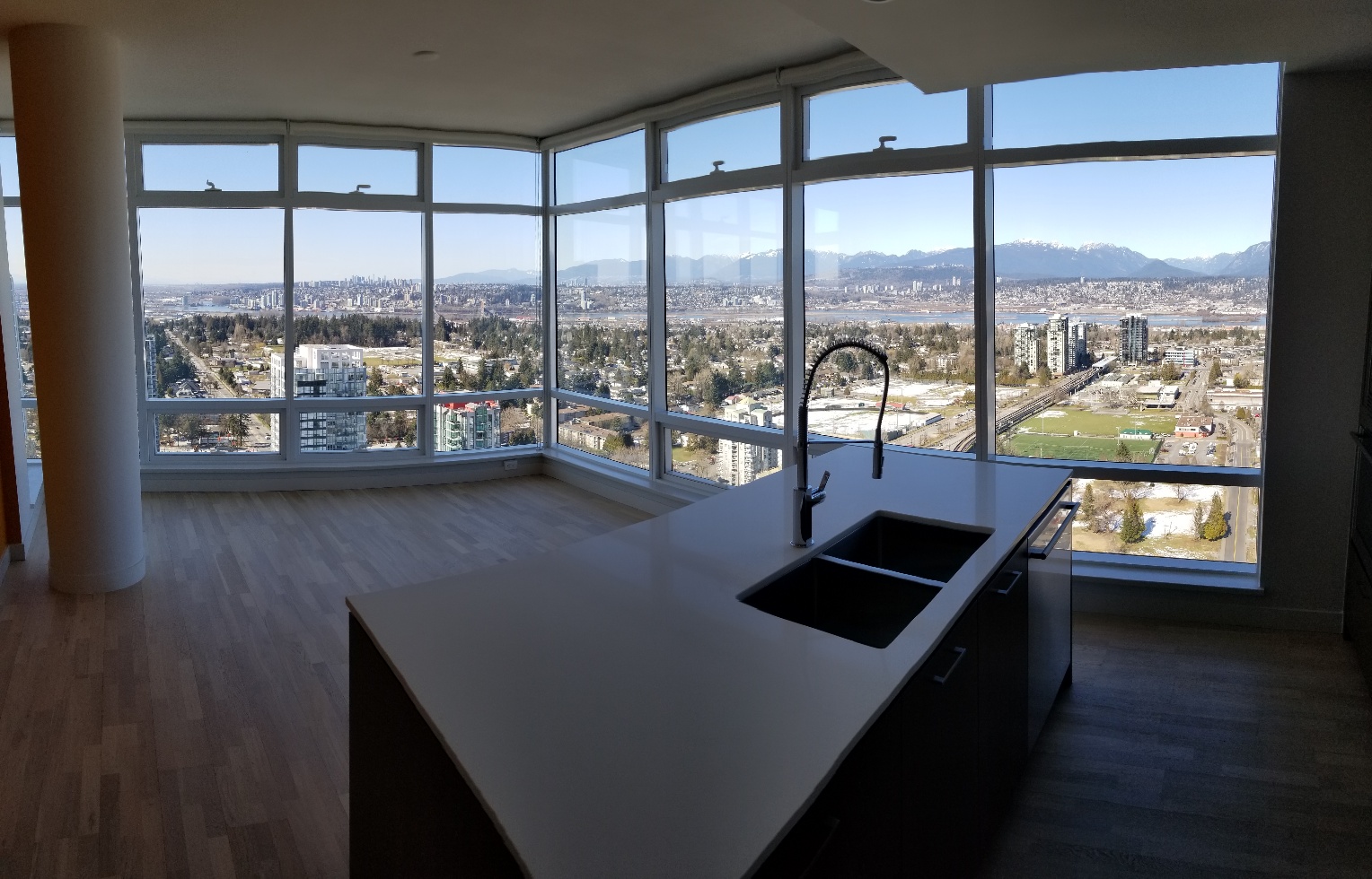 Brand new 2 bed, 2 bath in the highly sought after 3 Civic Plaza by Century Group. This very unique corner unit is located on the 38th floor with spectacular panoramic city and mountain views. Over 900 square feet of beautifully finished open plan space plus a private balcony to enjoy.