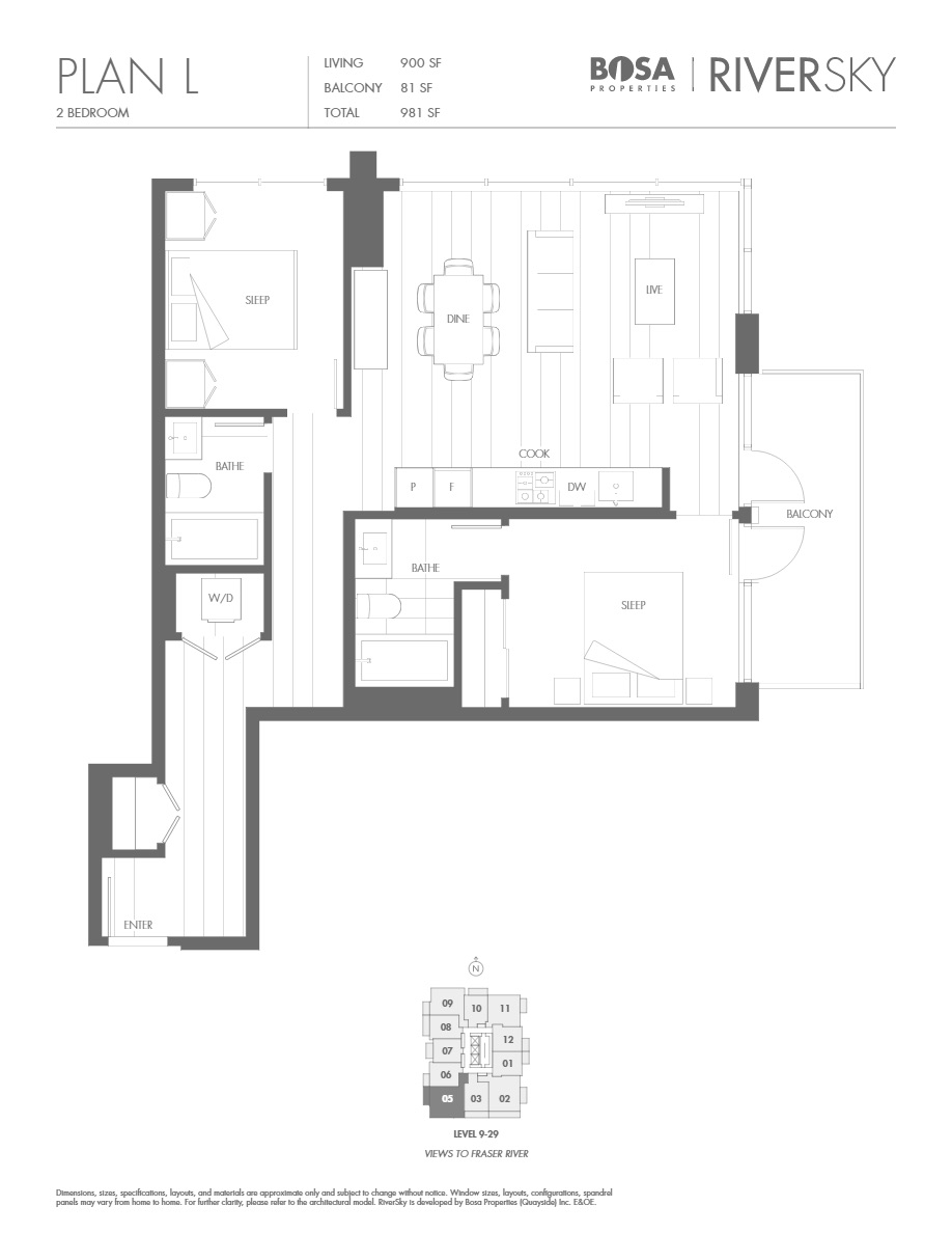 This brand new, modern building is located in the RiverSky building, just an elevator ride from New West Quay, the Fraser River and the Esplanade Boardwalk with Skytrain only steps away. 25 minutes from downtown Vancouver, 15 minutes from Metrotown and 10 minutes from SFU at Surrey.