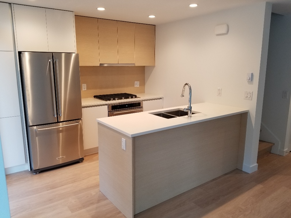 This 3 level concrete townhouse offers the ultimate in convenient and private living in the heart of Burquitlam. Living room and kitchen on ground floor, 2 bedrooms and 2 bathrooms on the second floor and a third bedroom/office/media room on the third. A massive rooftop balcony completes the space; this is a rare and truly special property that won't be available often.