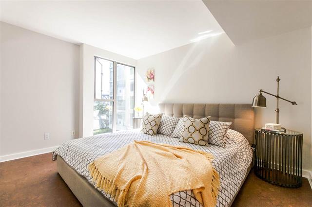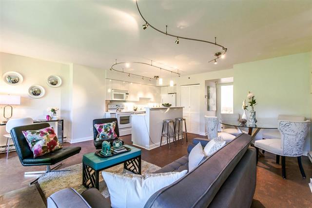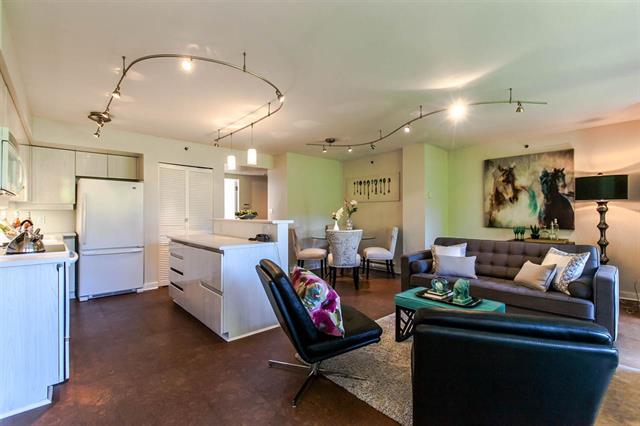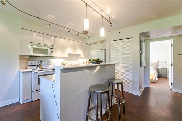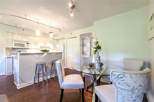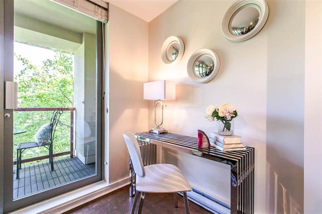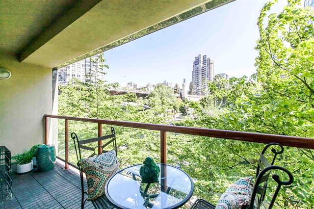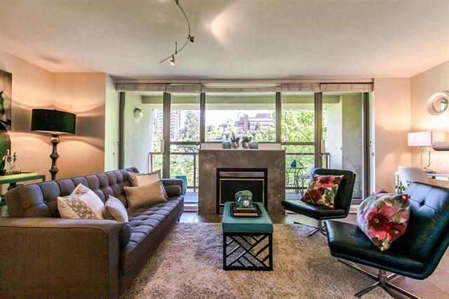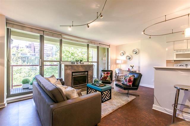 Resort style living at one of the best Waterfront locations in downtown Vancouver. Oversized one bed corner suite just steps to the Seawall, Marina, Beaches & Parks, Aquatic Centre & water taxi to Granville Island Market. Open concept living with big kitchen island, cork floors, gas fireplace and room for a home office. Huge expanse of windows face onto your spacious balcony and mature green trees. King size bedroom complete w/custom closets and semi-ensuite bath w/soaker tub. Premier complex with 24 hr concierge, security, visitor parking, and access to the Beach Club featuring 54' glass bottom pool, hot tub, squash court and full gym. Parking & Storage.