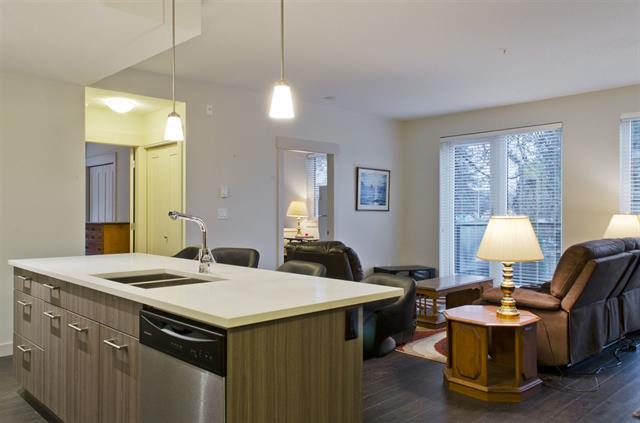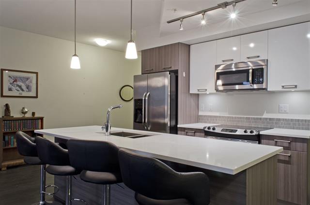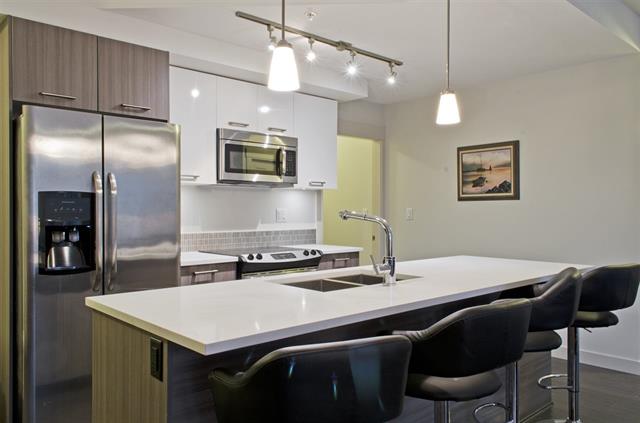 This huge 3 bedrom and 2 bathroom corner home at SPRING in Downtown Port Coquitlam boasts the most square footage in the building (1263sqft!) Open concept living space throughout. A gourmet Kitchen with large centre island, undermount sinks, plently of storage & stainless steel appliances is complete with a spacious Living and Dining area for entertaining. Natural light pours into every room with heightened ceilings & over-sized windows throughout. Two large bedrooms & extra-large Master with walk-in closet & private ensuite make this home perfect for the growing family or downsizer!