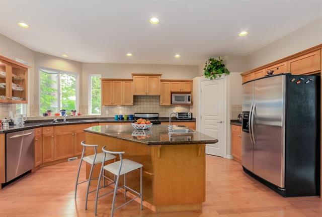 Step Inside This Gorgeous Executive Designer 3-Level, 4 Bedroom, Approximately 4000SQFT Home On The Sought After Cul-D-Sac Comminity of "Chartwell Green". Situated On A Tranquil, Natural, Private Green Belt Location, This Home Has It All - Solid Maple Hardwood Floors, Huge Gourmet Kitchen With Large Island, Granite Counters & Maple Cabinets, A Wonderful "Entertainer's Floorplan" With French Doors Off Living Room, Backyard Deck, 18' Ceilings, Cozy Gas Fireplace, Three Bedrooms Up (All Have Bathrooms), A Large Den On The Main Floor - Easily Converted To A 5th Bedroom. Easily to Build A Suite Downstairs, 2 Car Garage & Parking for 4 Cars. New Paint, Beautiful Back Yard, Concrete Tile Roof, Beautiful Finishing Details Throughout. Close To Schools & Amenities.