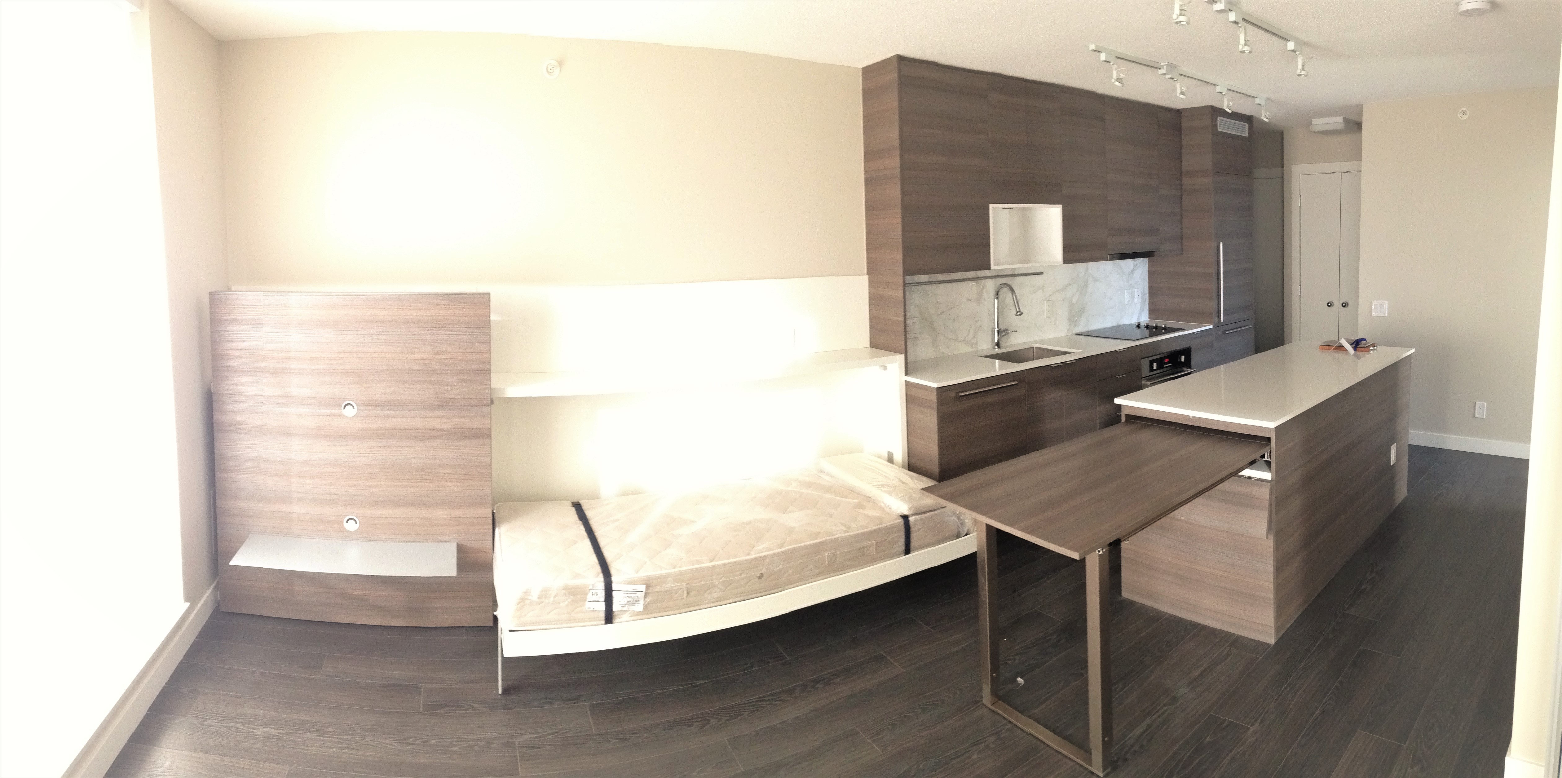 Proudly built by Bosa, the Alumni tower is the flagship building in the upcoming University District. 2 bedrooms / 2 bathrooms with a den and elegantly appointed quality finishes. This unit comes partially furnished with a queen sized murphy bed, built in single bed and built in dining room table that can accommodate up to 8 people.