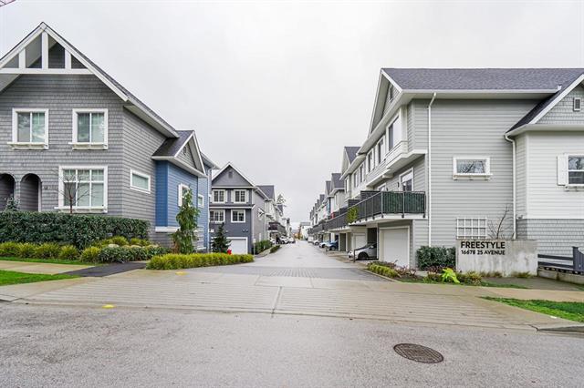 Welcome to Freestyle! Built by award-winning Dawson + Sawyer in the heart of Grandview Heights, South Surrey. This bright 3 bed + spacious den townhome is thoughtfully designed with an open floorplan featuring 9" ceilings on the main, along with a convenient powder. Finishing includes quartz countertops, a stainless steel appliance package, double vanity sinks in master ensuite and much more! This complex has a clubhouse, garden, kids playground, and a community Orchard park. Located close to supermarkets, restaurants and more at Morgan Crossing; quick access to Hwy 99, easy access to US border. Walking distance to Pacific Heights Elementary and Grandview Heights Aquatic Centre.
