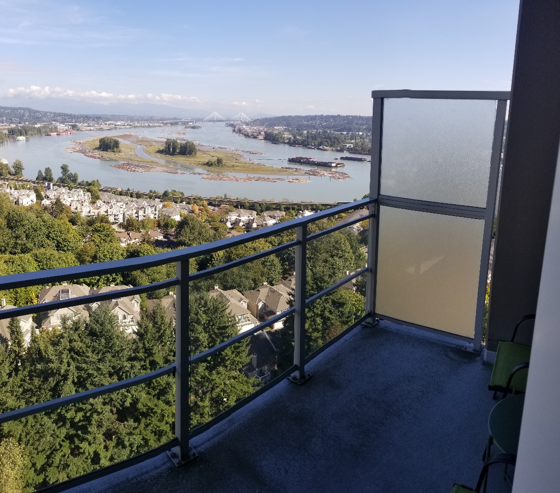 Stunning, unobstructed river & Mountain views from this gorgeous 870 sf, 2 bedroom (one on each side of living room both with closets & access to separate balcony), 2 baths, north east facing suite located on the quiet side of the building and featuring an open plan, kitchen with quartz counters, stainless steel appliances, gas cook top; parking stall and storage locker included in rent. 2 balconies, floor to ceiling windows, great layout, tile and laminate floors, spa-like bathrooms & Master bedroom with heated floors. Building well maintained & managed with excellent gym, outdoor pool & swirl pool, theater and social room & lots of visitor's parking.