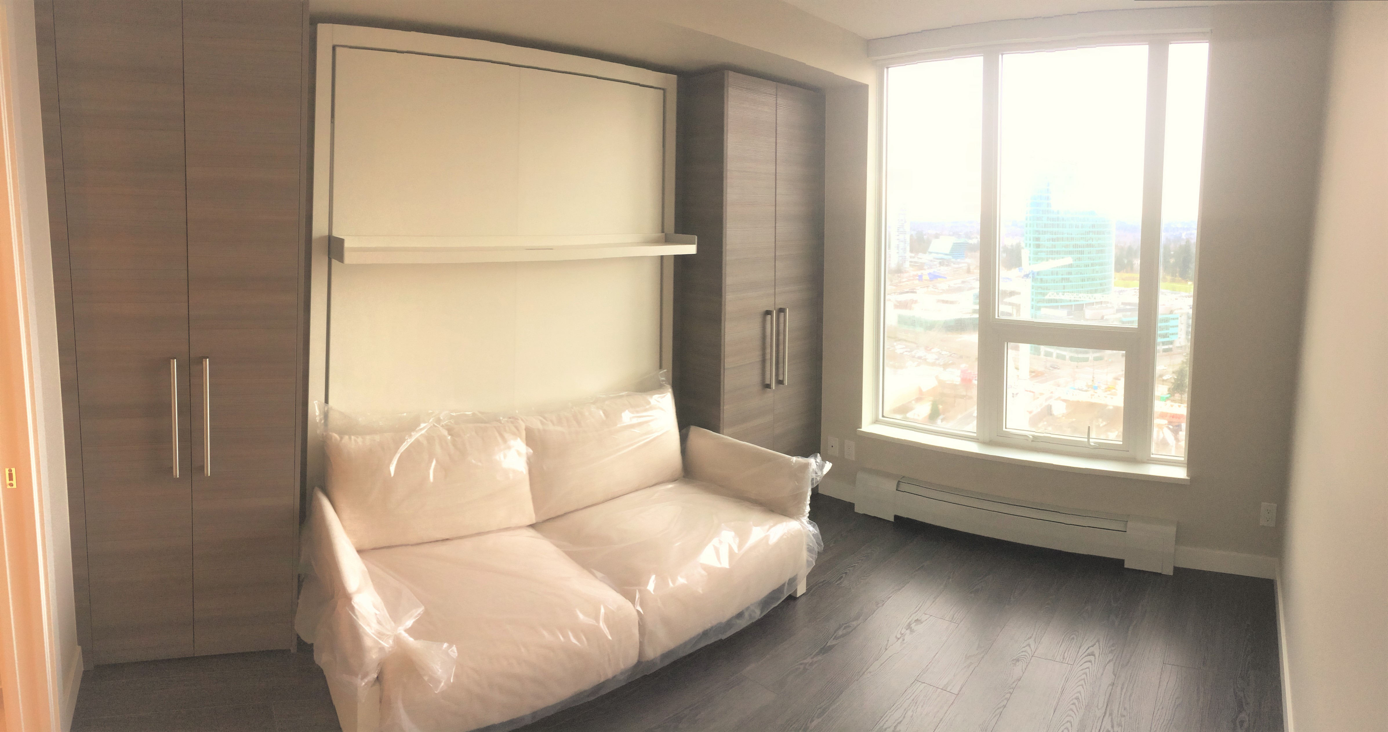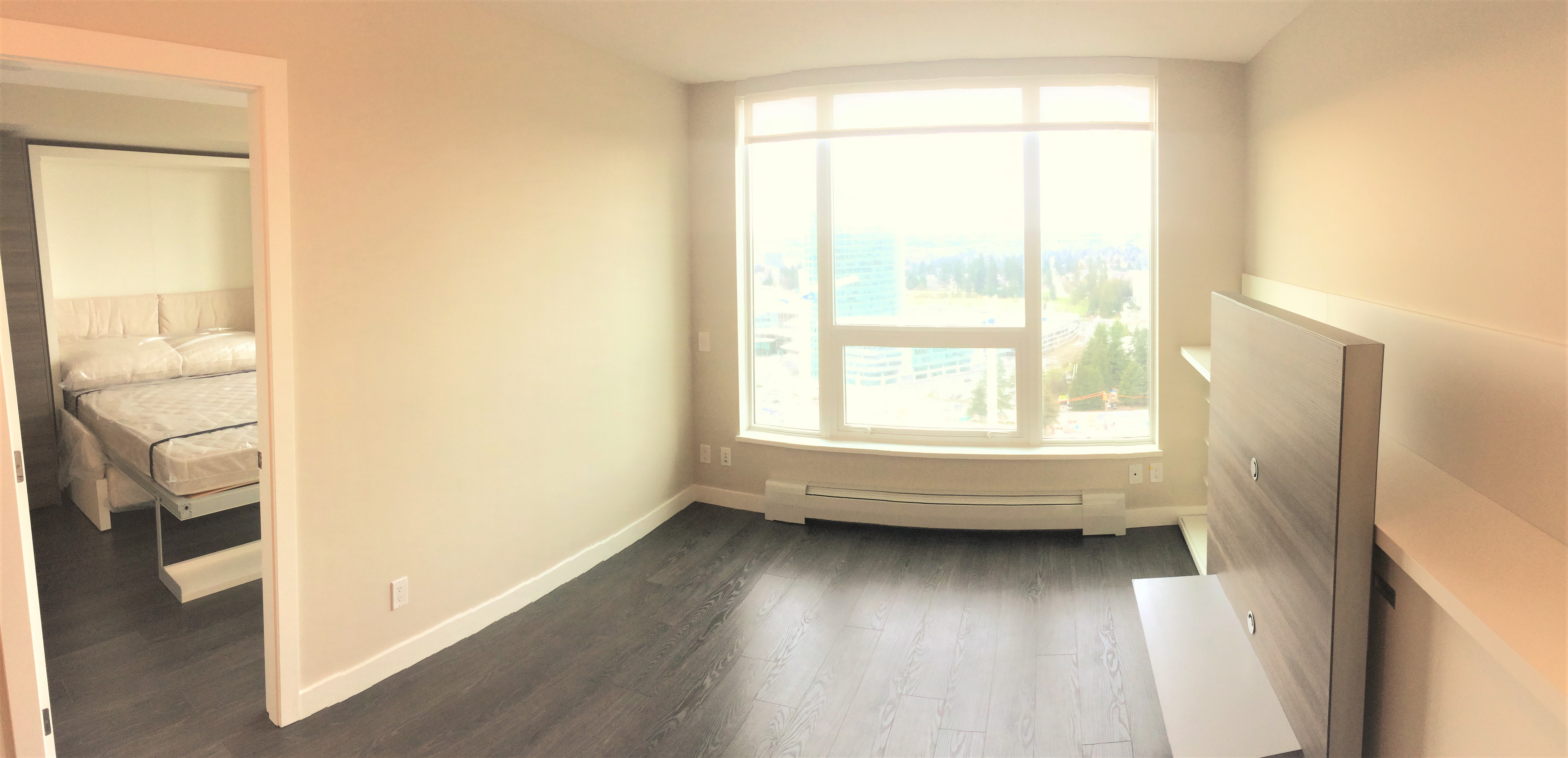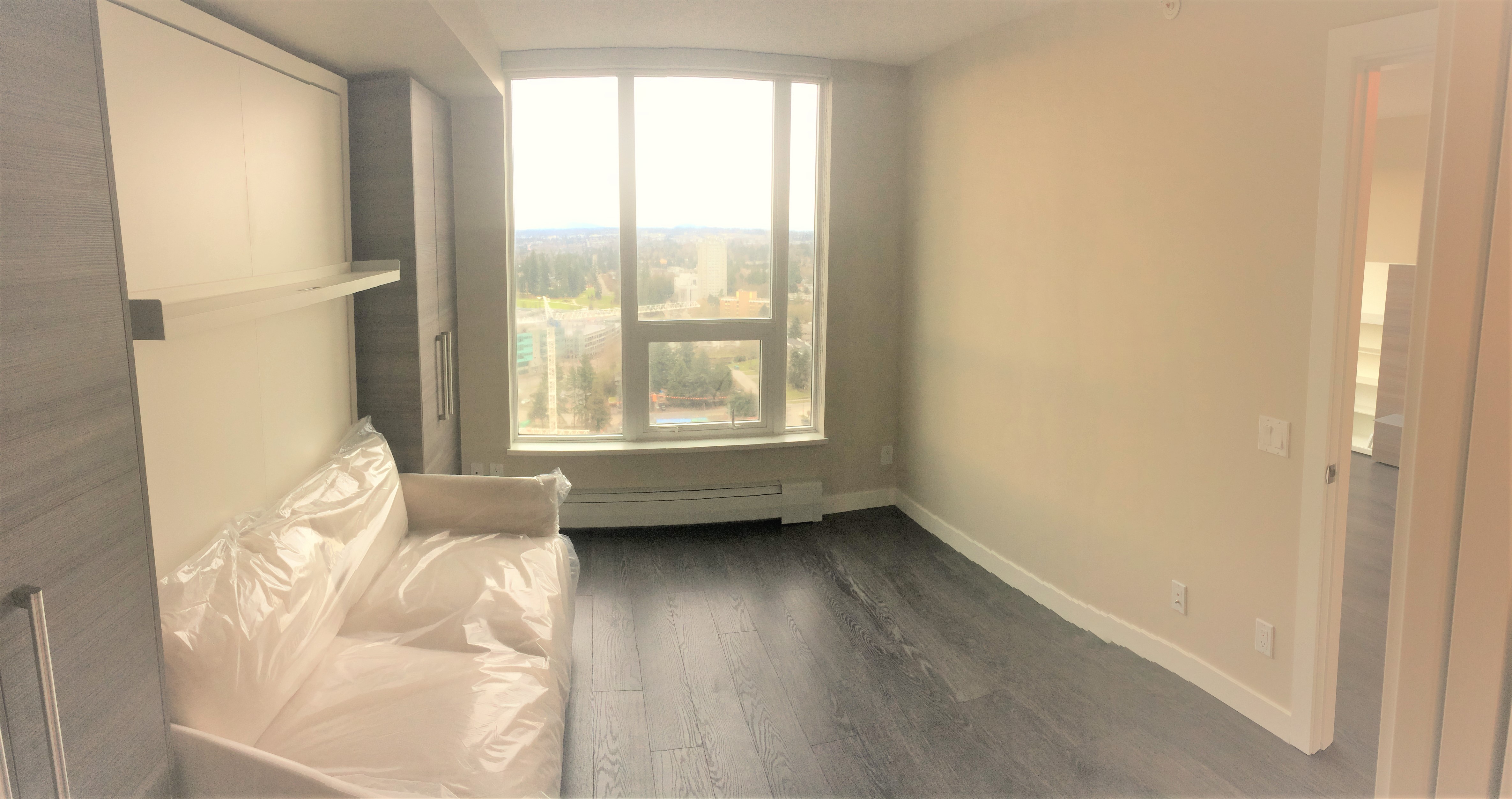 1 bedroom apartment located in the exciting University District, Surrey Central. Great layout with lots of closet space. Steps away from the Skytrain Station, Restaurants, Shopping and SFU Campus. Modern comfort in the Alumni tower by Bosa Properties. Comes with some furnishings including queen size Murphy bed, sofa bed, dinning table, dishwasher, washer/dryer in unit, etc. Great views from the 33rd Floor!