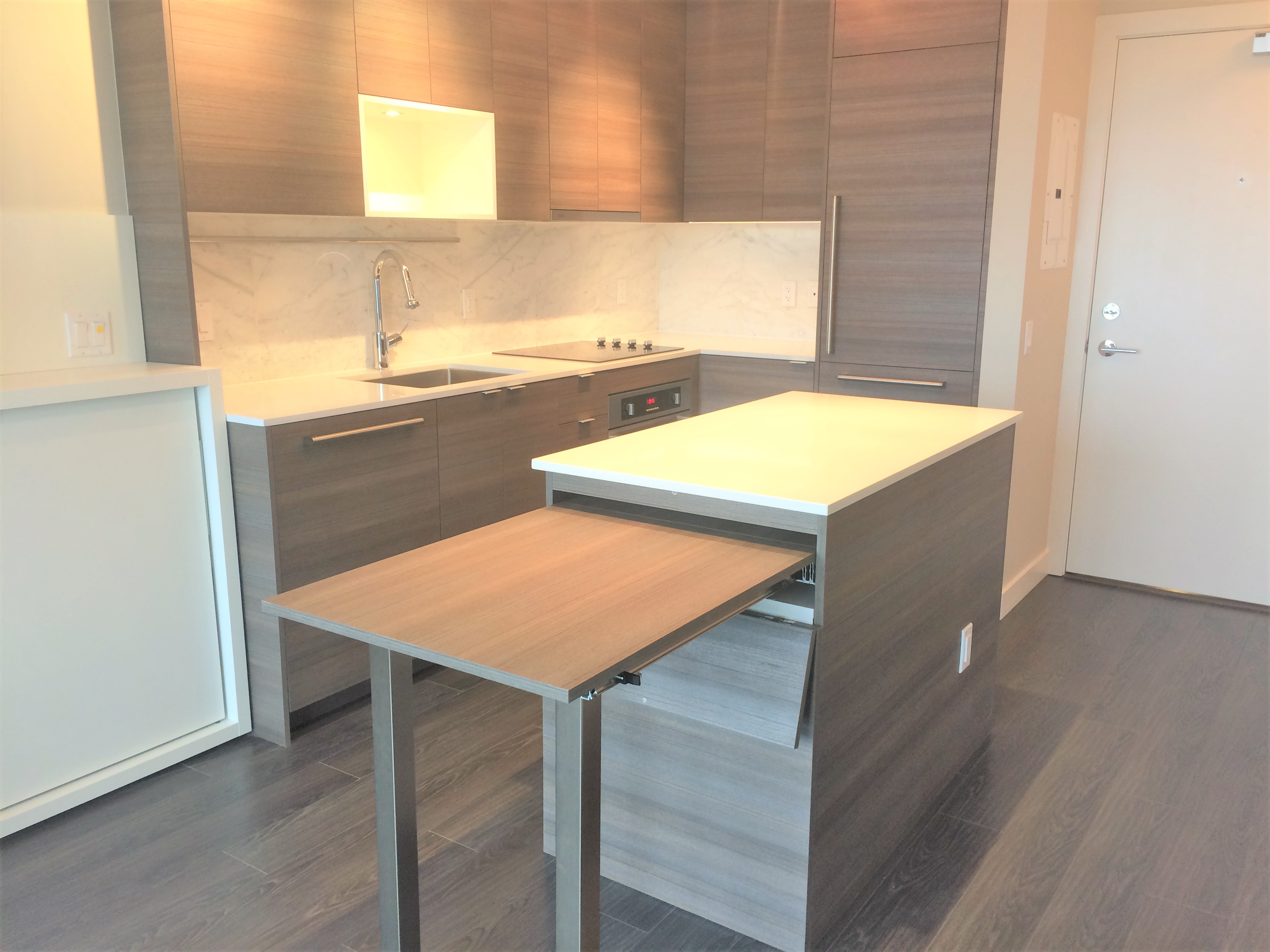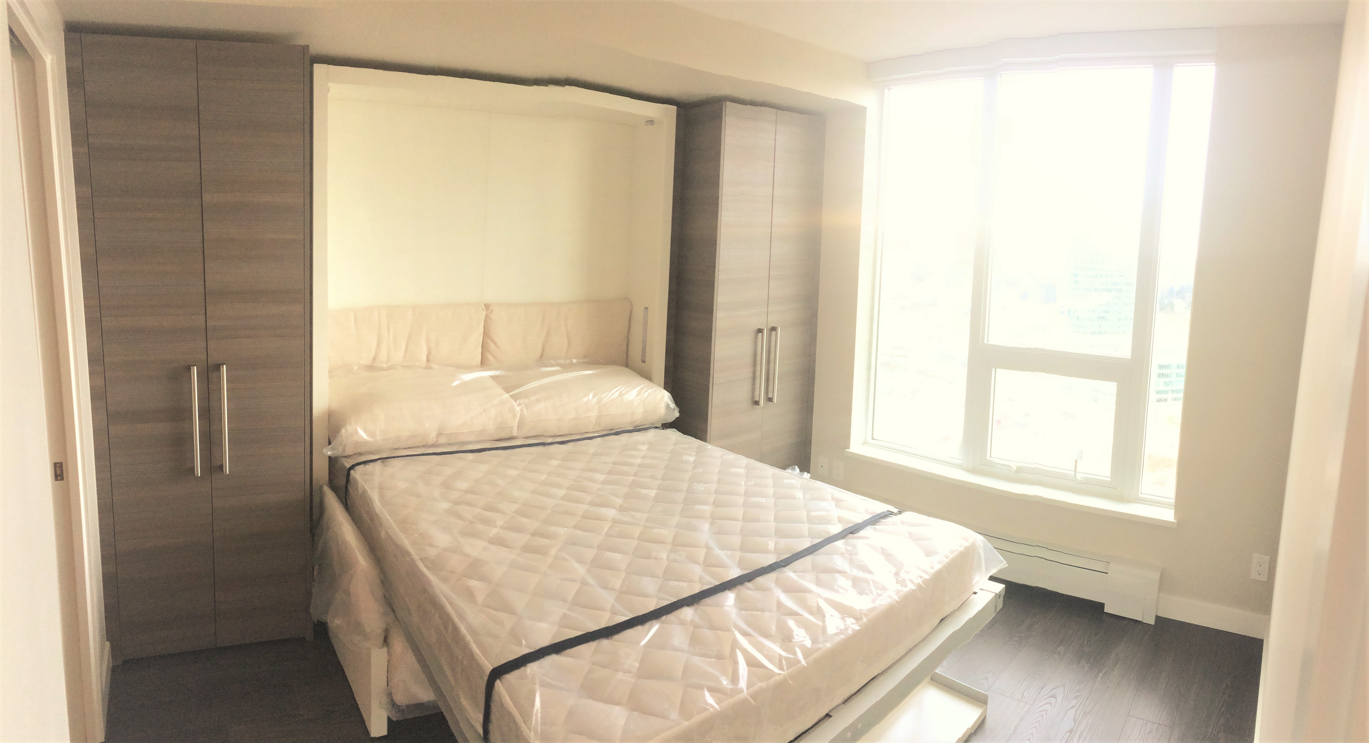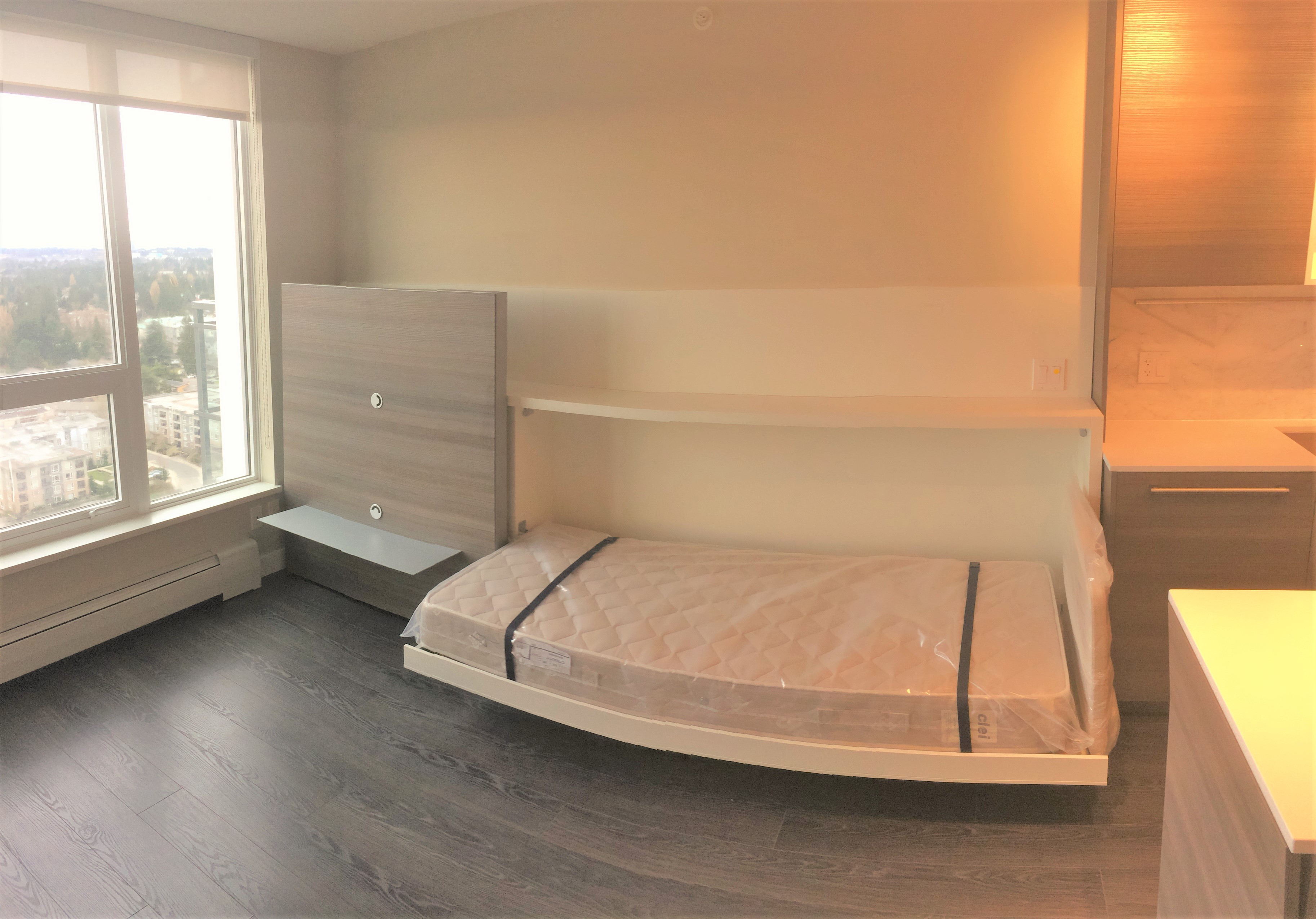 1 bedroom apartment located in the exciting University District, Surrey Central. Great layout with lots of closet space. Steps away from the Skytrain Station, Restaurants, Shopping and SFU Campus. Modern comfort in the Alumni tower by Bosa Properties. Comes with some furnishings including queen size Murphy bed, sofa bed, dinning table, dishwasher, washer/dryer in unit, etc. Great views from the 33rd Floor!