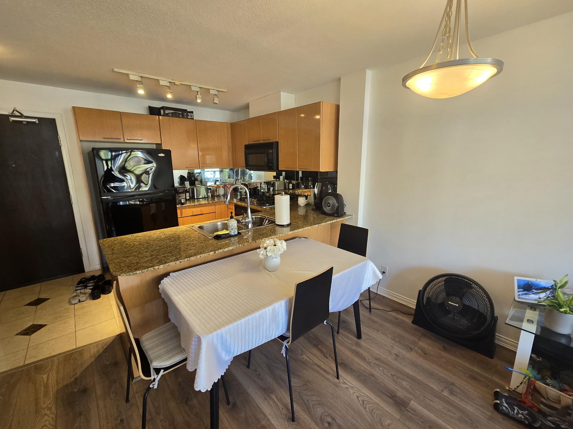 Discover premium living in Richmond! This spacious 1-bedroom plus den unit in the PERLA complex offers a great functional layout with no wasted space. Features include laminate floors, an L-shaped kitchen, one parking stall, and one storage room. The complex boasts an indoor swimming pool, steam room, gym, recreation room, TV room, party room, and a huge terrace garden. Conveniently located close to Richmond Center, the library, Ice Center, restaurants, banks, and SkyTrain.