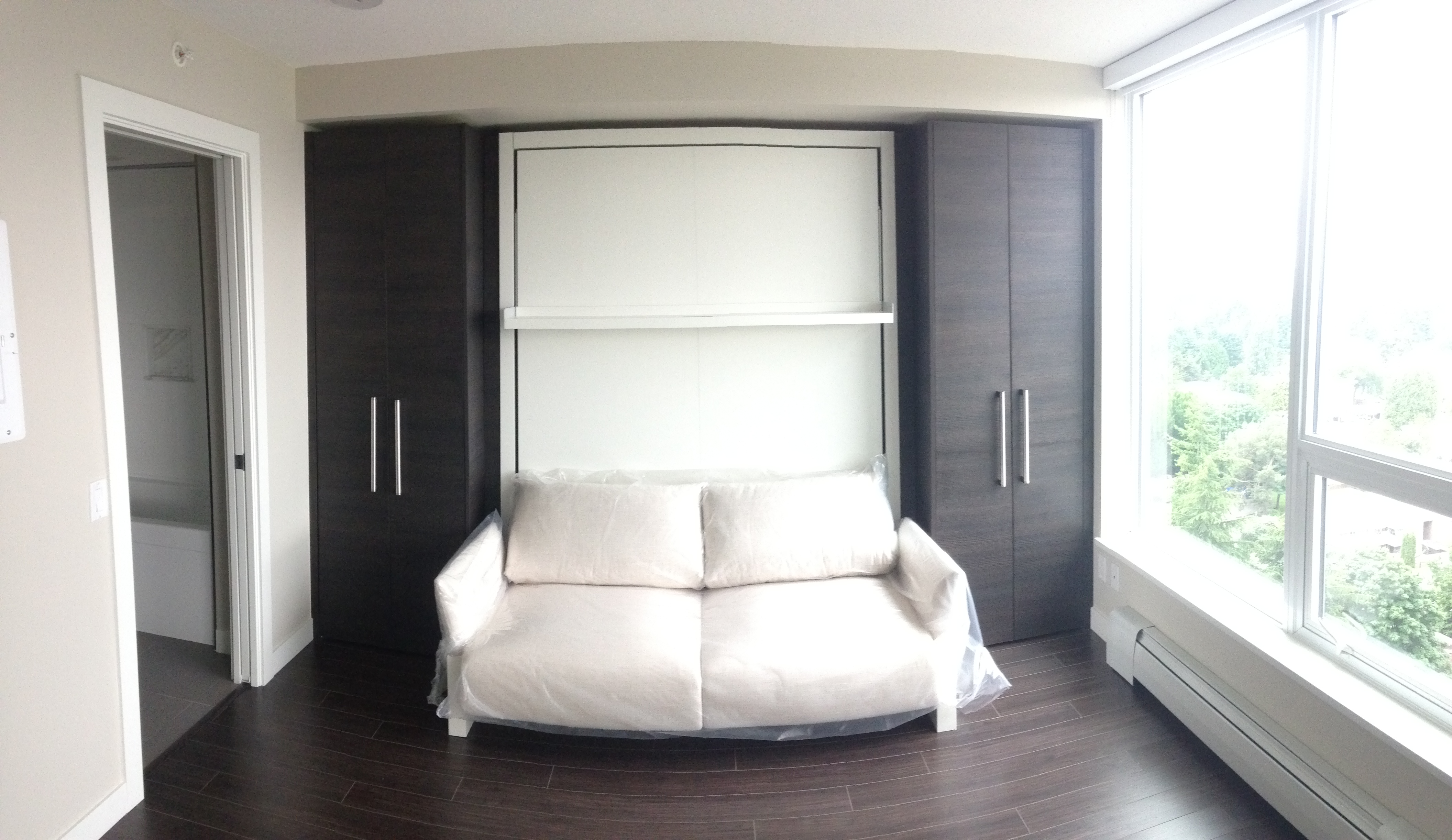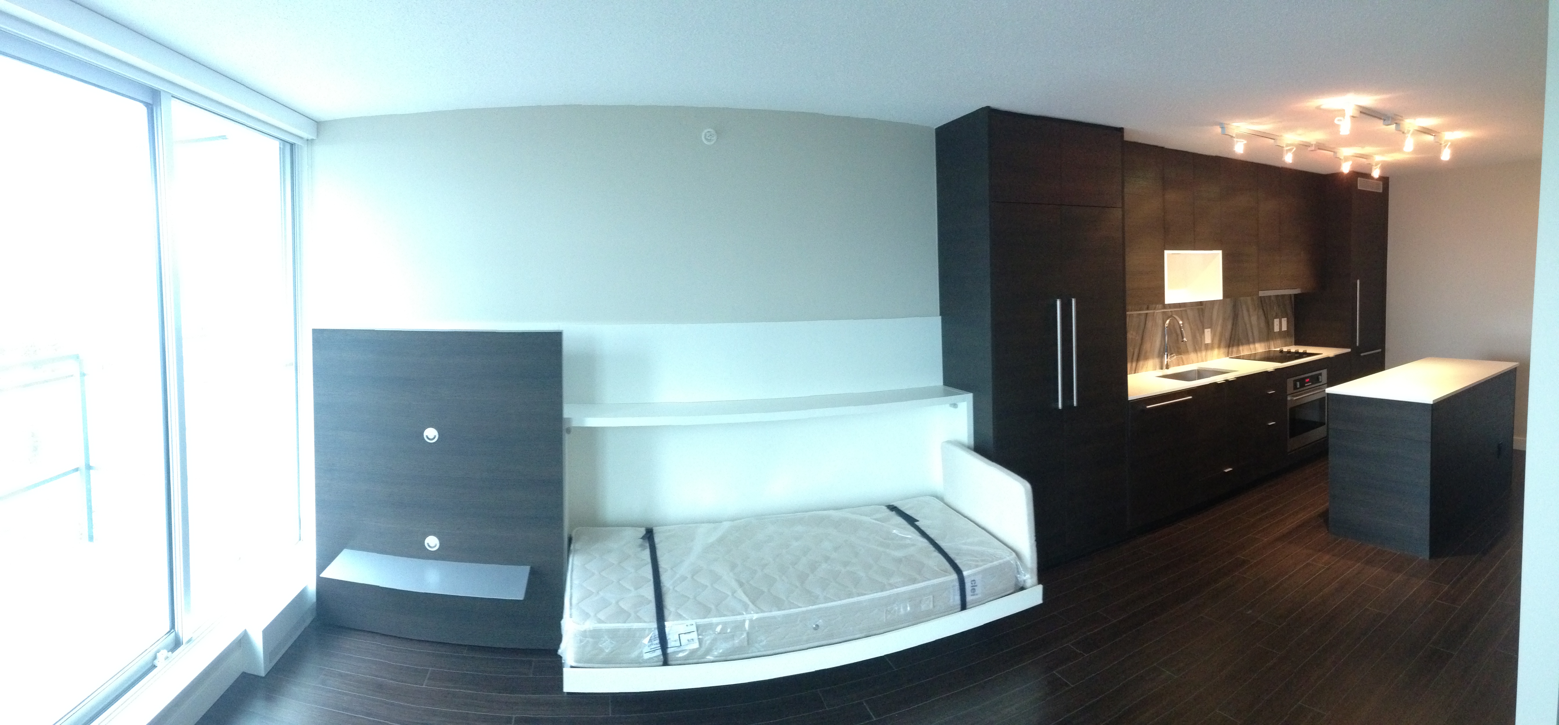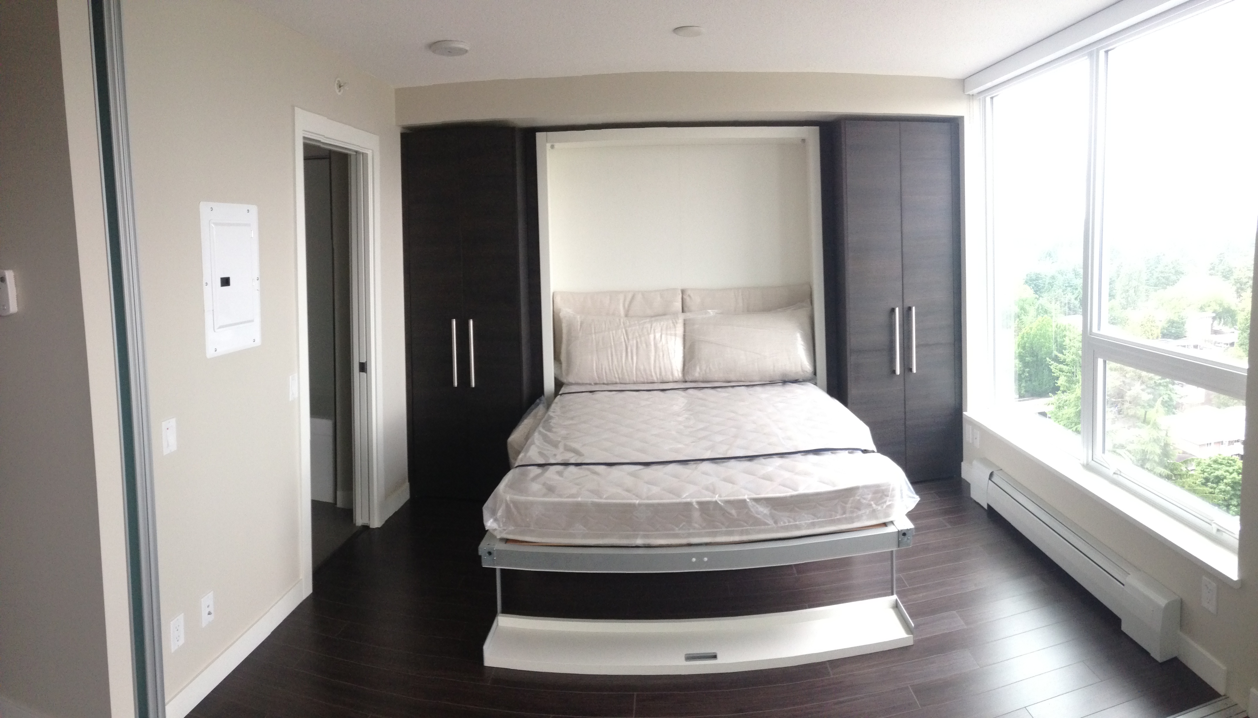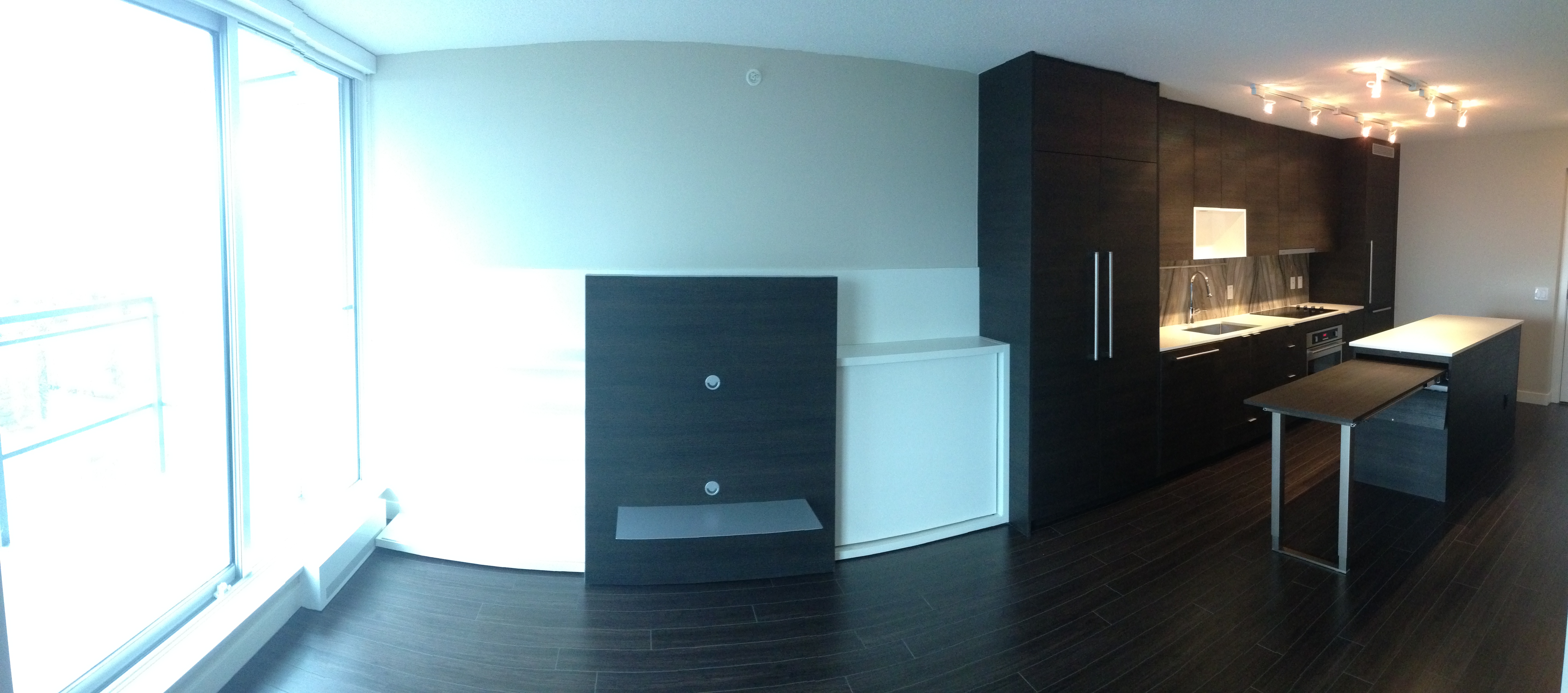 Spacious 1 bedroom apartment in brand new building located in the exciting new University District, Surrey Central. Great layout with lots of closet space. Steps away from the Skytrain Station, Restaurants, Shopping and SFU Campus. Modern comfort in the Alumni tower by Bosa Properties. Comes with some furnishings including queen sized Murphy bed, sofa bed, dinning table, microwave, dishwasher, washer/dryer in unit, etc.