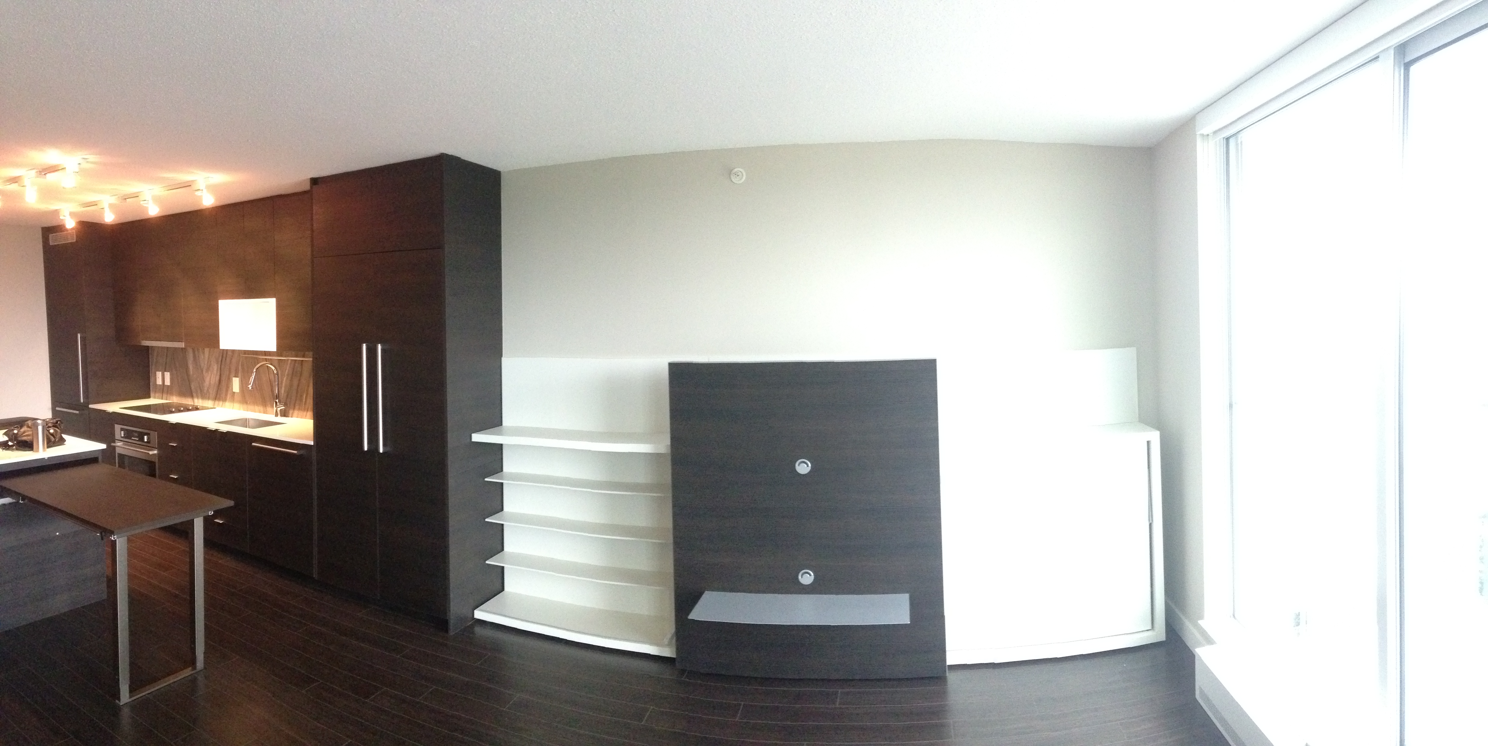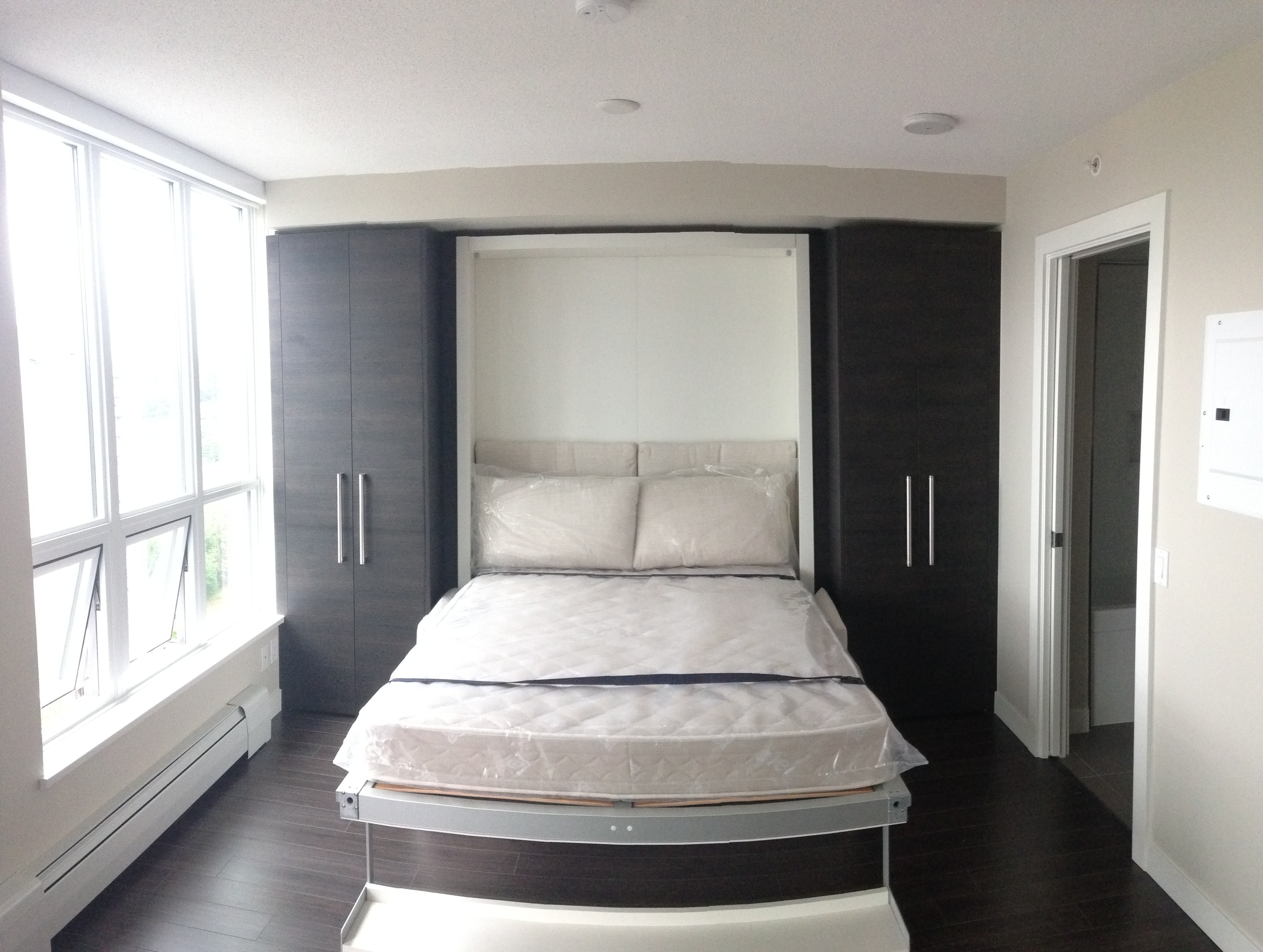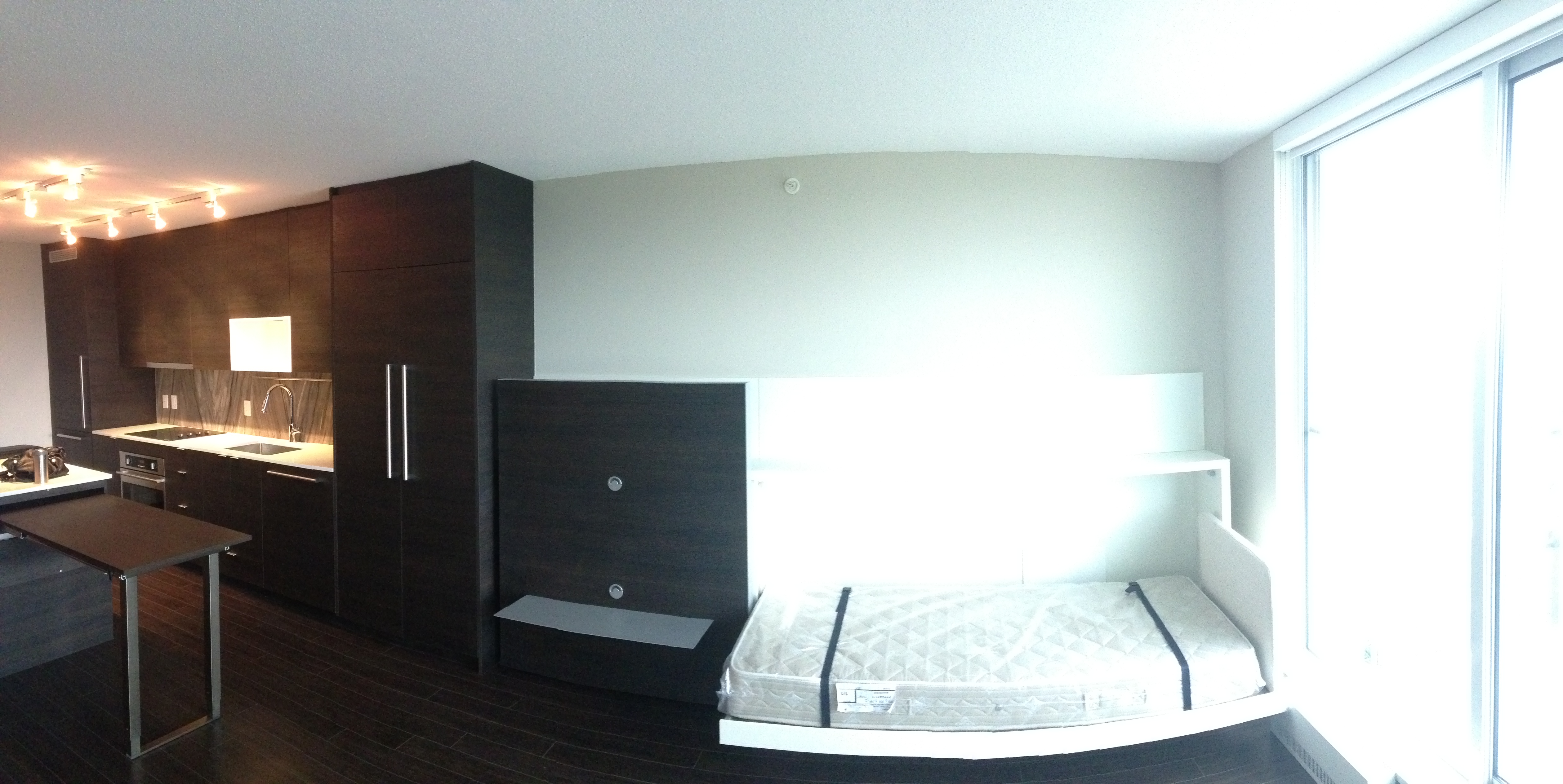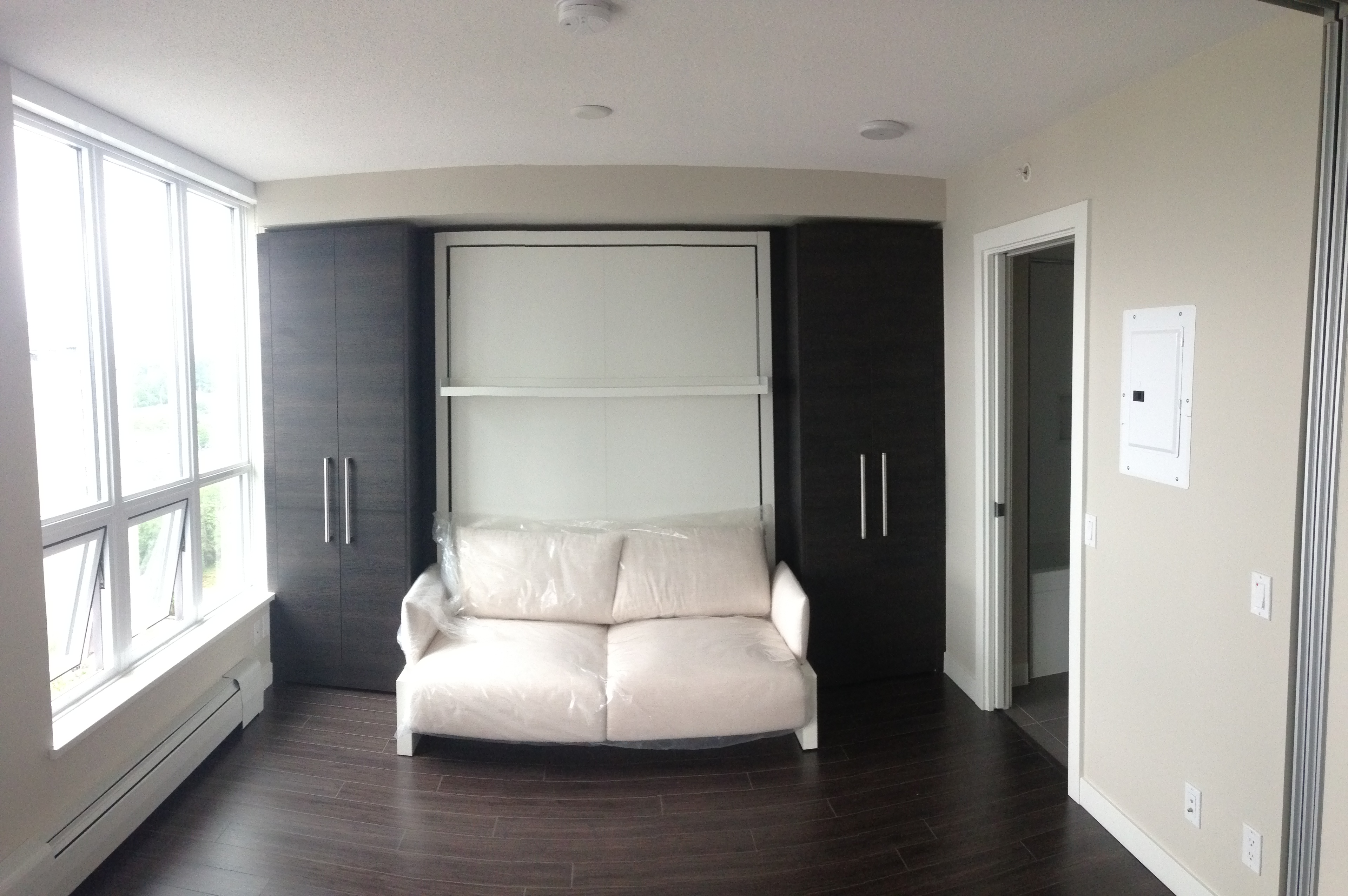 Spacious 1 bedroom apartment located in the exciting new University District, Surrey Central. Great layout with lots of closet space. Steps away from the Skytrain Station, Restaurants, Shopping and SFU Campus. Modern comfort in the Alumni tower by Bosa Properties. Comes with some furnishings including queen-size Murphy bed, sofa bed, dining table, microwave, dishwasher, washer/dryer in unit, etc.